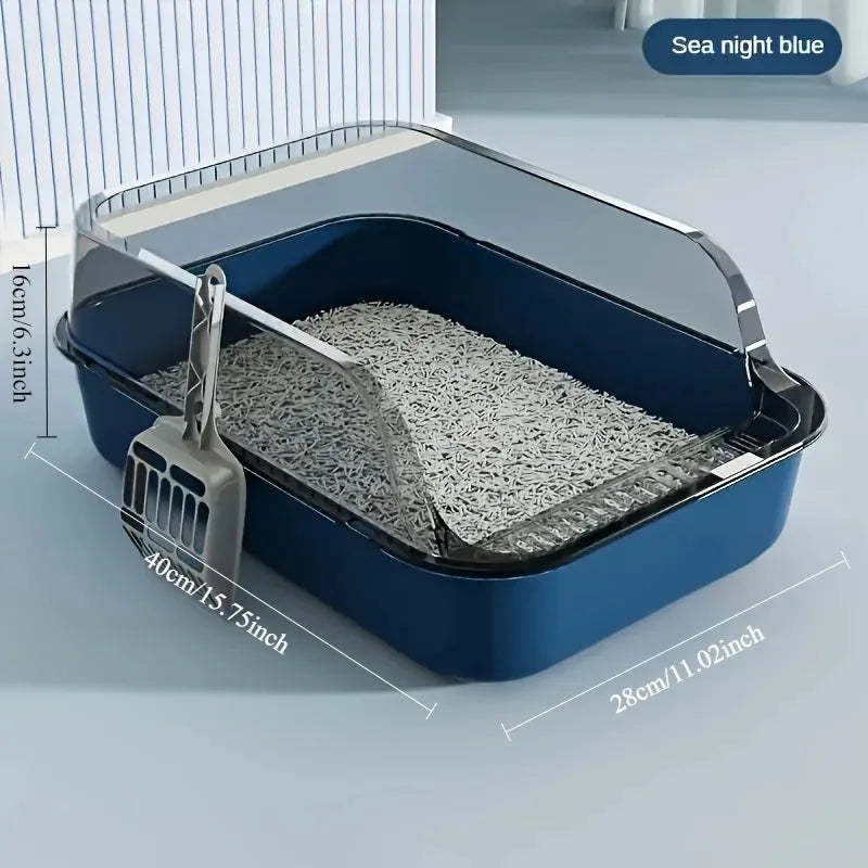 Bac à litière semi-fermé pour chat | Modèle épaissi anti-éclaboussures, facile à nettoyer, avec pelle incluse